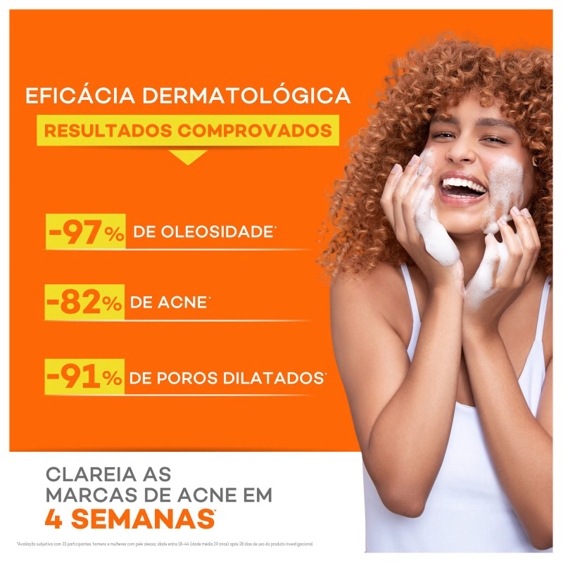 Fórmula dermatologicamente testada, ideal para peles oleosas e acneicas