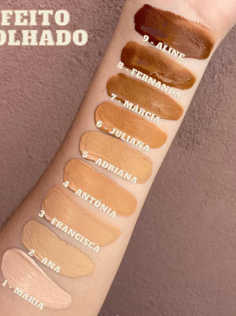 Após higienização da pele e primer, aplique uma base de maneira uniforme usando um pincel, esponja ou os dedos.